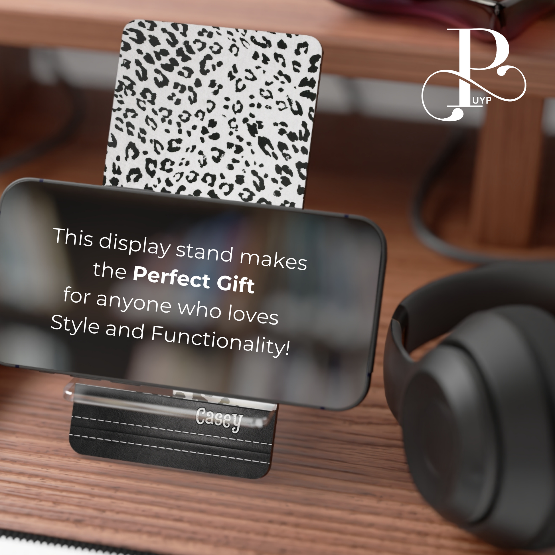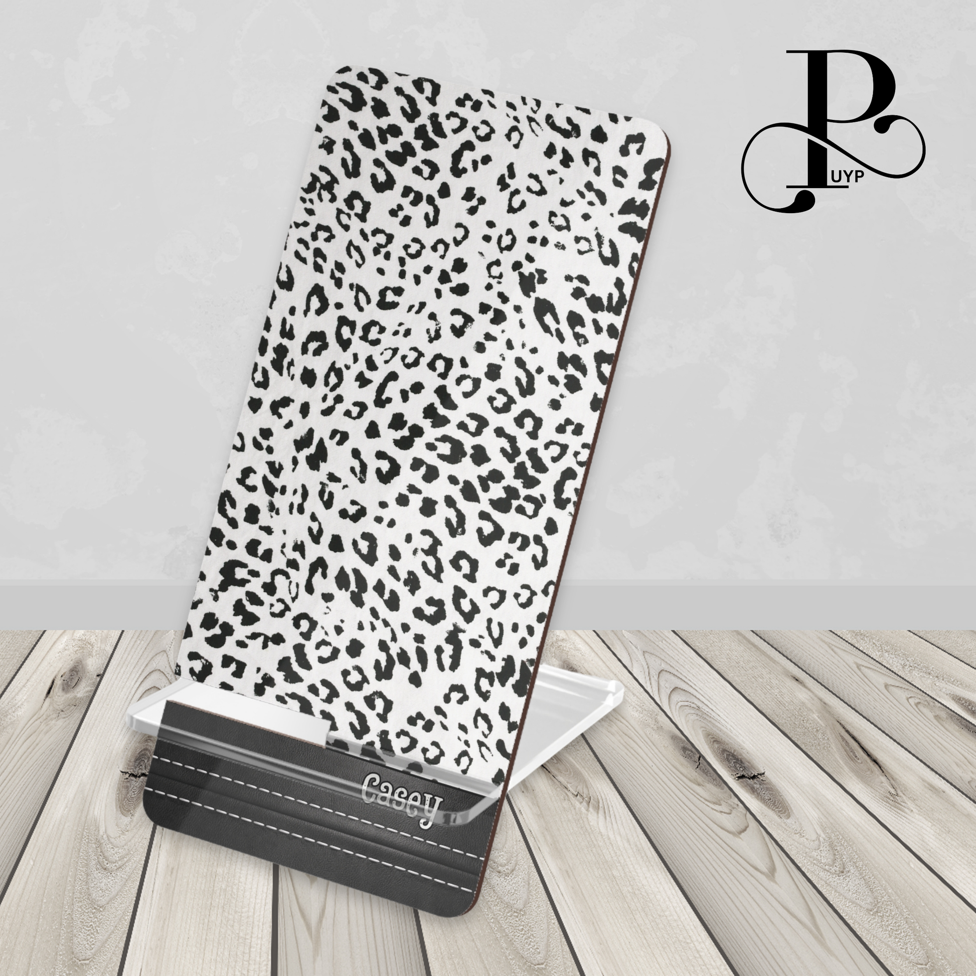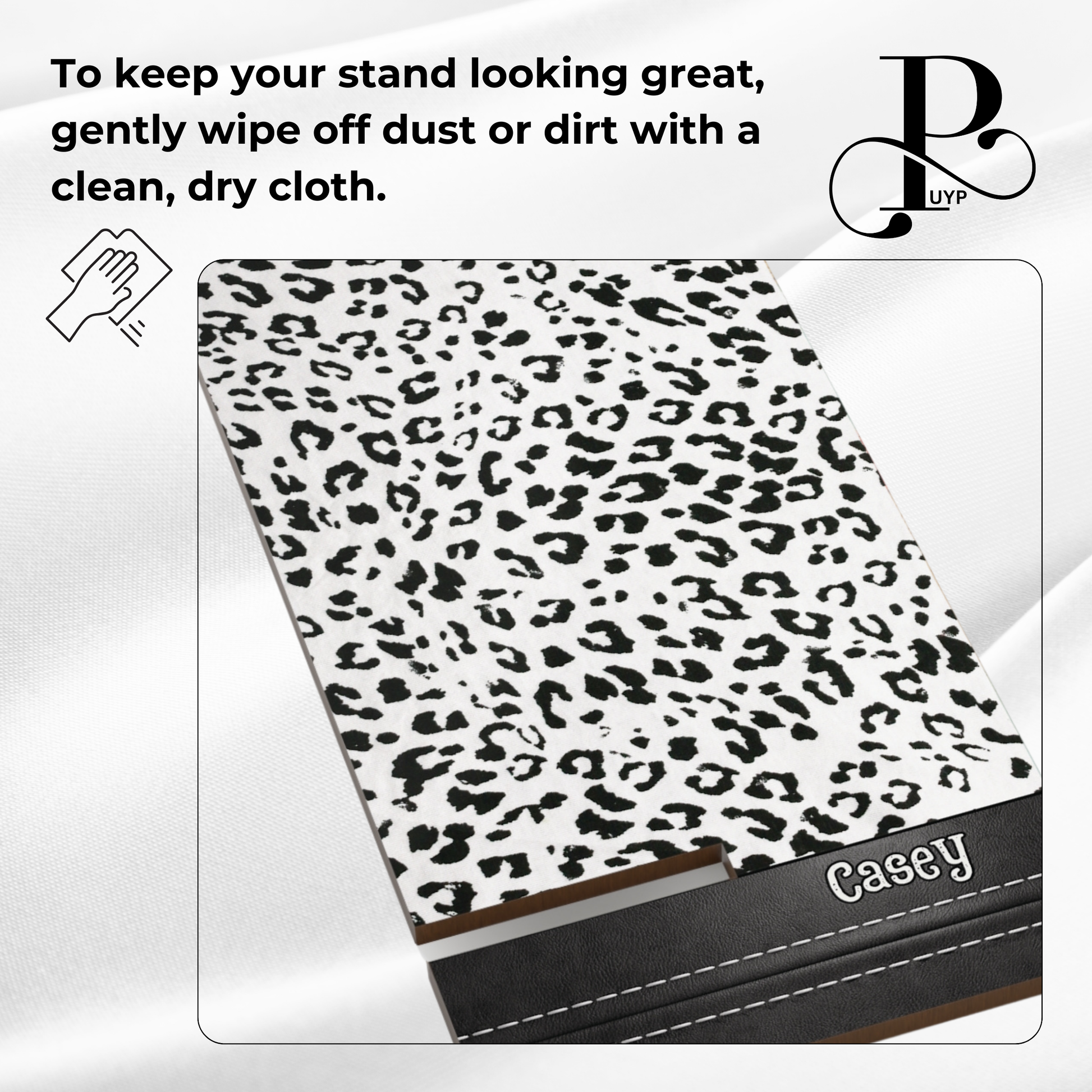 Wild and fierce! This black and white cheetah print design makes your display stand roar with style, especially with your name adding the perfect touch. ❤︎ It holds your phone at the perfect angle, making it ideal for watching videos, video calling, or just showing off your phone's design.