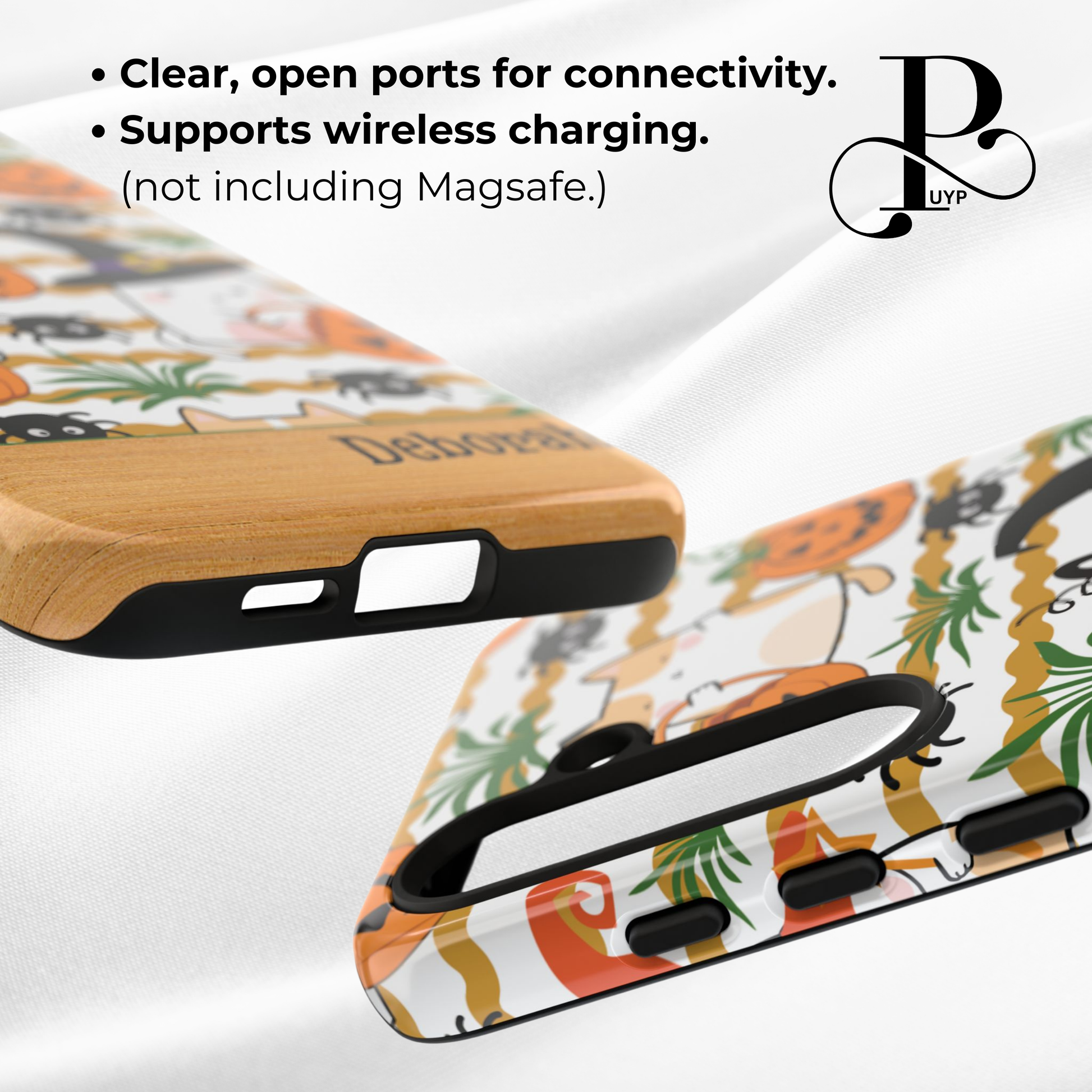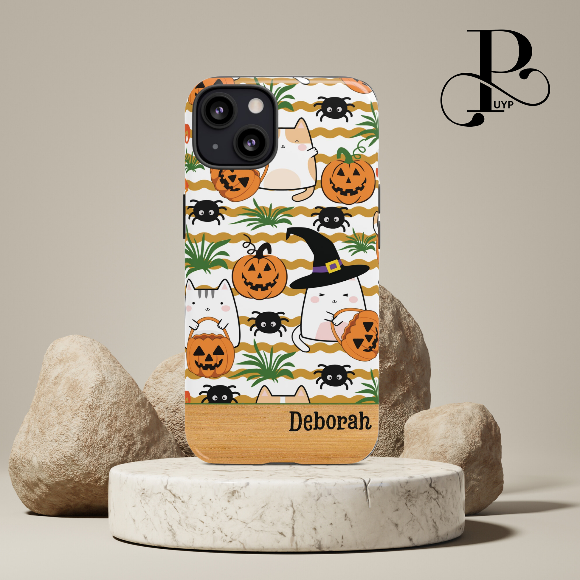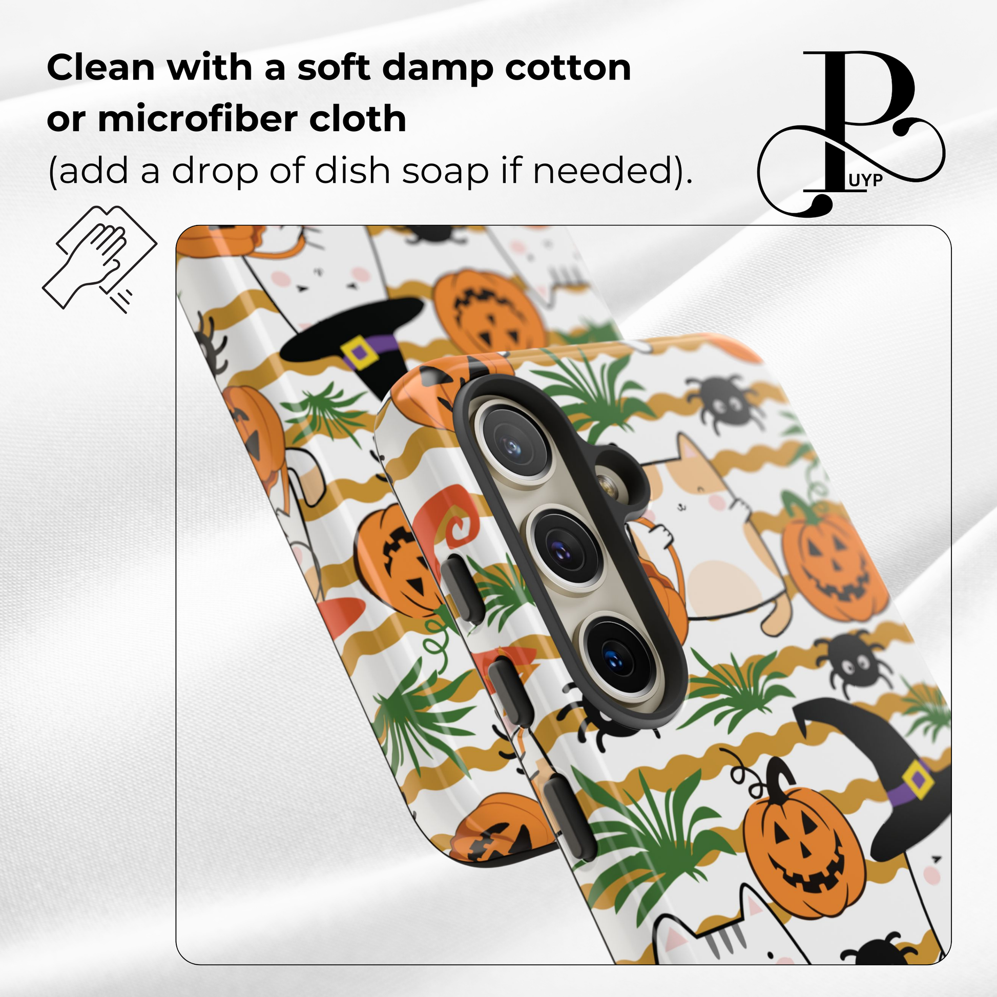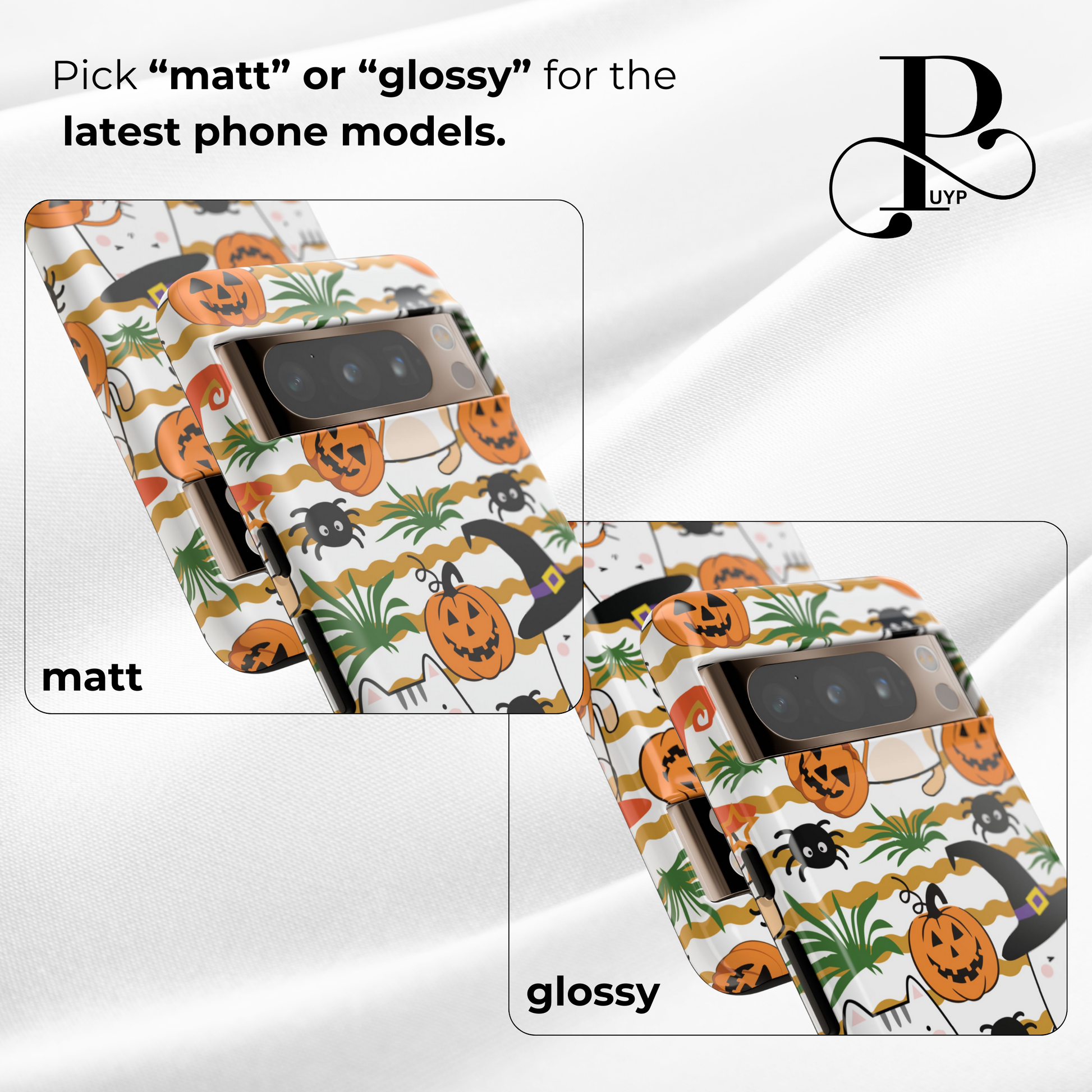 Too cute to spook! This phone case with playful cats, adorable spiders, and pumpkins is the sweetest way to celebrate Halloween. ❤︎ Designed with care and attention to detail, it not only protects your device but also lets your personality shine.